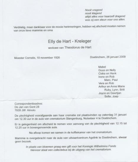 EllydeHart-kreleger.jpg Gepubliceerd op 14 maart 2021 in Rouwbrieven / BidprentjesVolledige resolutie (467 × 550) Volgende → Elly de Hart- Kreleger Geb.18 November 1926 te Meester Cornelis overl.26 Januari 2009